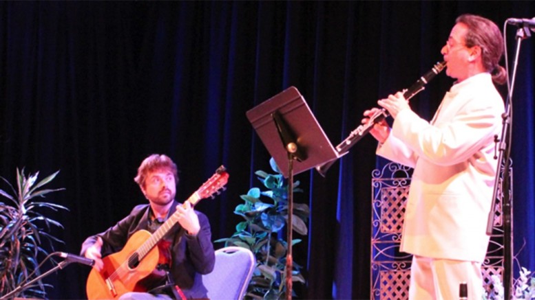 Gisèle Bart– Le 22 octobre dernier, à la salle St-François-Xavier de Prévost, Diffusions Amal’Gamme nous présentait le duo Contra-Danza formé du clarinettiste Denis Doucet et du guitariste Sébastien Deshaies. L’affiche nous l’avait annoncé : avec les deux protagonistes debout de chaque côté d’une voie ferrée, chacun un pied posé sur un rail, ce serait un voyage . Un voyage musical en Occident. Un « voyage virtuose ».