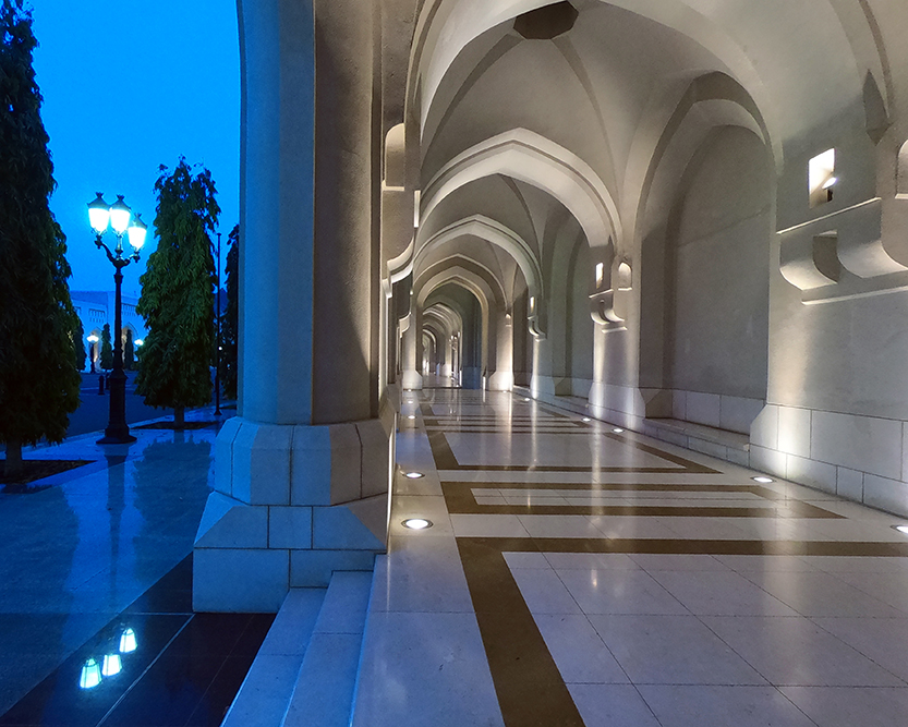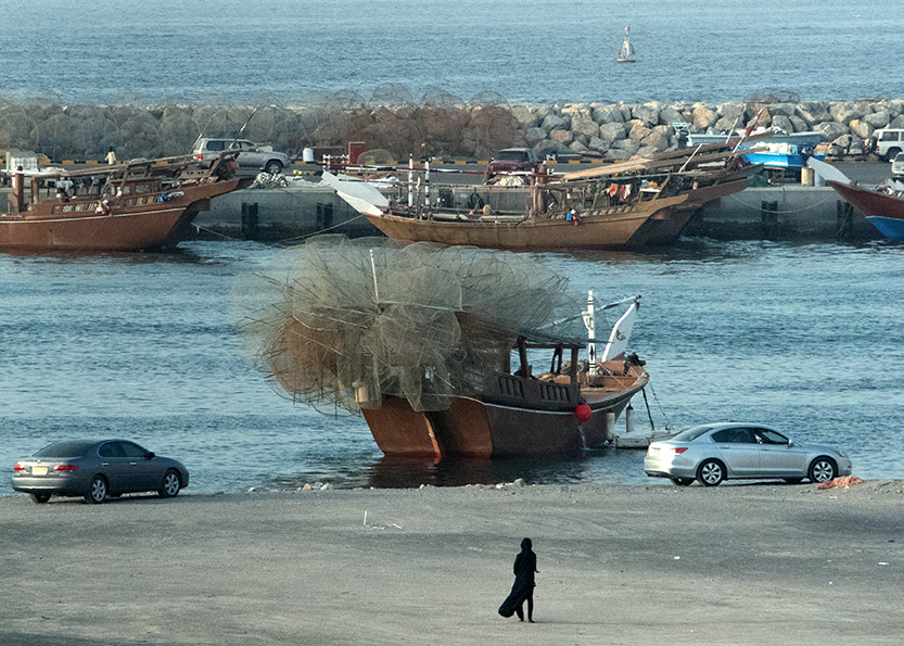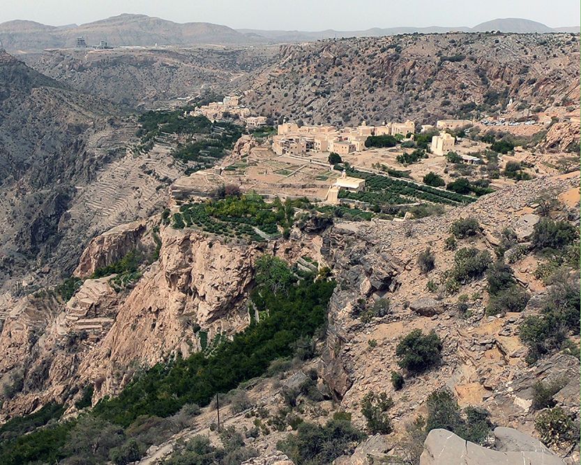 Un littoral de 3165 km avec d’immenses falaises et fjords à l’état naturel. Des eaux de mer turquoises et incroyablement chaudes et poissonneuses idéales pour la plongée sous-marine (Khor ash Sham où les dauphins nous escortent, Bandar Khayan et ses tortues). Un espace de 1300 km de plages, véritable paradis pour camper, pour la baignade et le farniente (la mer d’Oman et l’océan Indien). Des montagnes et des canyons vertigineux (les monts Hajar, Djebel Shams et Samhan au sud) truffés de quelques villages traditionnels magnifiques avec leurs cultures (la rose) en terrasses (Djebel Akhdar) et reliés entre eux par de multiples sentiers en balcons. Des châteaux magnifiques (Jabrin), des palmeraies, des Wadi, vallées et lits de rivières (Wadi Tiwi) remplis de bassins alimentés par des sources d’eau douce (Gouffre de Bimmah), des lieux formidables pour de longues randonnées, d’heureuses rencontres, et des baignades rafraîchissantes. Des villes à l’échelle humaine à l’architecture traditionnelle et harmonieuse (Mascate). L’île de Masirah aux paysages lunaires et dromadaires en liberté. Des marais salants, des pêcheurs, des oasis et deux déserts, Sharqiya et le majestueux Rub al Khali appelé par les Bédouins le Quart vide qui s’étend de l’Arabie Saoudite jusqu’à Oman et au Yémen. C’est le grand désert d’Arabie, difficile d’accès certes, mais c’est le prince des déserts avec ses dunes impressionnantes de couleur rose-tangerine. Un pur ravissement et une chaleur indescriptible pour nous, gens du nord.