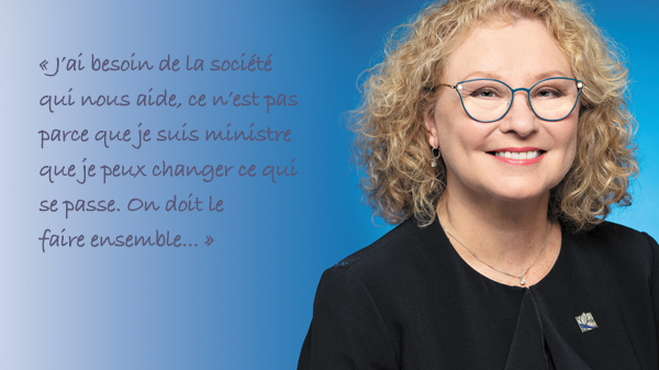 Jacinthe Laliberté & Lise Pinard – Dans le cadre de la journée internationale des Femmes qui se déroulera sous le thème « Le respect, ça se manifeste », Marguerite Blais, députée de Prévost, ministre responsable des Aînés et des Proches aidants nous a fait l’honneur de répondre à nos questions.