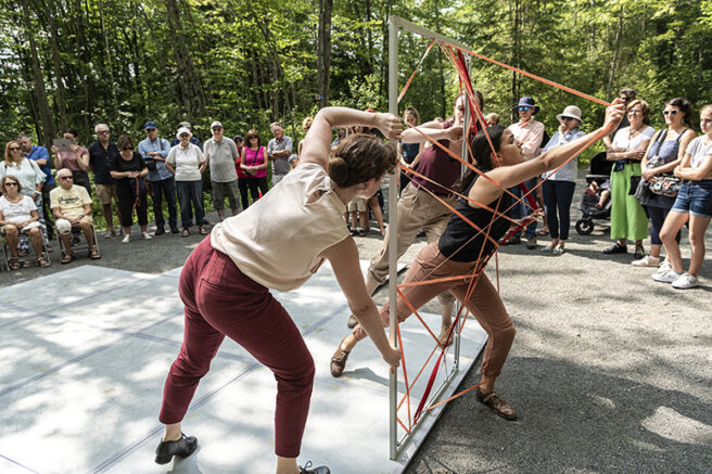 Carole Trempe – C’est fantastique de découvrir tout le talent qui pousse dans la forêt de Saint-Sauveur ! Le vendredi 4 aout 2023, sous un rare soleil d’été, le FASS a présenté une chorégraphie dans Les sentiers de la danse intitulée Aube par la compagnie de danse Zeugma, ce qui a provoqué une rencontre avec Frédérique-Annie Robitaille, de Zeugma.
