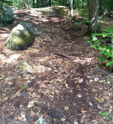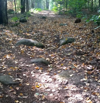 Pour les sentiers « colonisateurs », aménagés surtout par des fondeurs donc conçus pour un usage hivernal, le parcours du sentier se limitait à couper la fardoches et au besoin, quelques petits arbres pour obtenir un tracé plutôt rectiligne. Puis on enlevait les débris forestiers (arbres morts et branches mortes au sol). Aucune intervention au sol sauf peut-être pour enlever une petite souche. Aucune préoccupation quant au drainage du sentier. Dans quelques rares cas, une mini-excavatrice a été appelée en renfort pour enlever de grosses pierres et/ou pour niveler la piste. Ici encore, aucune préoccupation avec le drainage du sentier.