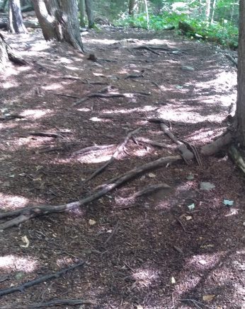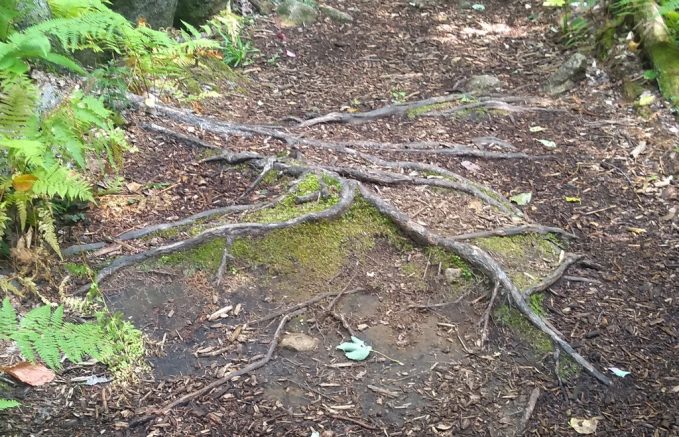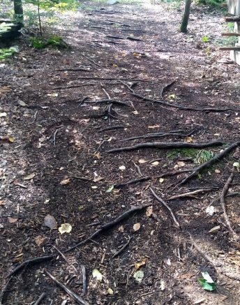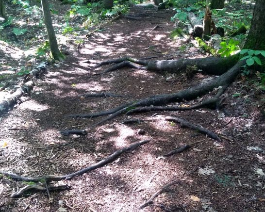- « Les racines d’arbres exposées sont généralement le résultat d’une érosion causée par une utilisation excessive, des événements météorologiques, une mauvaise conception du sentier, une mauvaise construction du sentier ou des sols mous. Si les racines de l’arbre sont exposées, elles risquent d’être constamment endommagées par la circulation, ce qui compromet l’état de l’arbre. »3