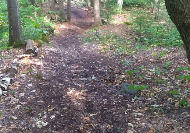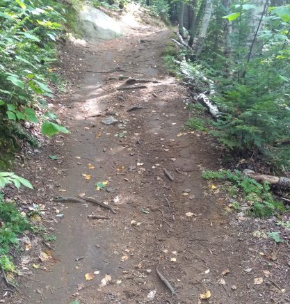 Avec le passage répété des randonneurs dans les sentiers, surtout les vélos de montagne, les surfaces des pistes se sont compactées, formant une dépression de quelques centimètres de profondeur au centre de la piste. Le sol compacté et le creux ainsi formé retiennent l’eau de ruissellement dans la piste. Dans les pentes, les creux deviennent des ruisseaux intermittents entraînant de l’érosion après de fortes pluies. Changements climatiques obligent, ce phénomène s’est accentué dans les dernières années.