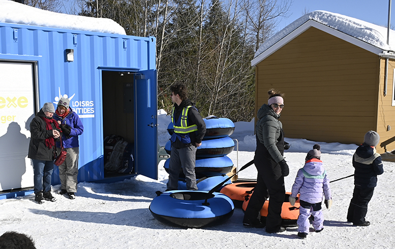 Lise Pinard – C’est par un froid sibérien, samedi 7 février dernier au parc Gilbert-Aubin, que la Municipalité de Piedmont a inauguré son conteneur Circonflexe en présence du maire de Piedmont Bernard Bouclin, du député fédéral Les Pays-d’en-Haut Tim Watchorn, du président de Loisirs Laurentides Michael Leduc et de plusieurs représentants de Loisirs Laurentides entourés d’enthousiastes participants, sous la tente et les deux pieds dans la neige, brrrr…