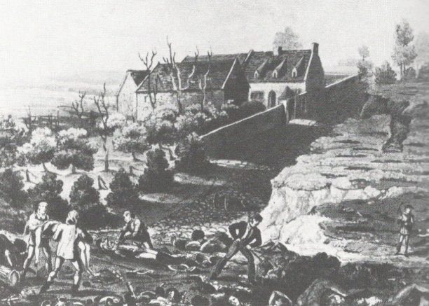 En 1836, un historien français, Edgar Quinet, alors en visite à Waterloo, remarque que des paysans s’occupent à creuser des tranchées autour de la ferme de Haie Sainte où les combats furent violents, desquelles ils sortent des amoncellements prodigieux d’ossements. Intrigué, l’historien demande à un paysan, pourquoi cette profanation. Celui-ci de répondre : pour la production de noir animal. Il ajoute que les ossements des soldats de la Garde impériale sont particulièrement prisés, car ils sont en grand nombre.