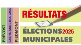 PRÉVOSTvote%électeurinscritsrejetésParticipationMairiePaul Germain287155,21%52001128311147,07% Nicolas Toupin232944,79% D1Joey Leckman51767,41%76716482347,94% N Ducharme25032,59% D2Frédéric Lachance45141,76%106320601752,43% Pierre McCann41638,52% V Wolff19618,15% D3Audrey Paquette36534,30%105220581251,70% Sylvain Paradis36234,02% Lucie Mayer32530,55% D4Antoine Kingsbury43351,30%82021352439,53% Yvon Blondin38745,85% D5Sara Dupras42154,32%76417601144,03% Maria Moreno34344,26% D6Pierre Daigneault38050,13%74416221446,73% Eric Cadote36448,02% Total électeurs inscrits 11283 Résultats officiel de Prévost PIEDMONTvote%électeurinscritsrejetésParticipationMairieBernard Bouclin68451,90%132432331541,23% Denis Royal63448,10% poste 1Hélène Barette68752,68%132432332741,17% Zélia Lefebvre61747,32% poste 2Pierre…